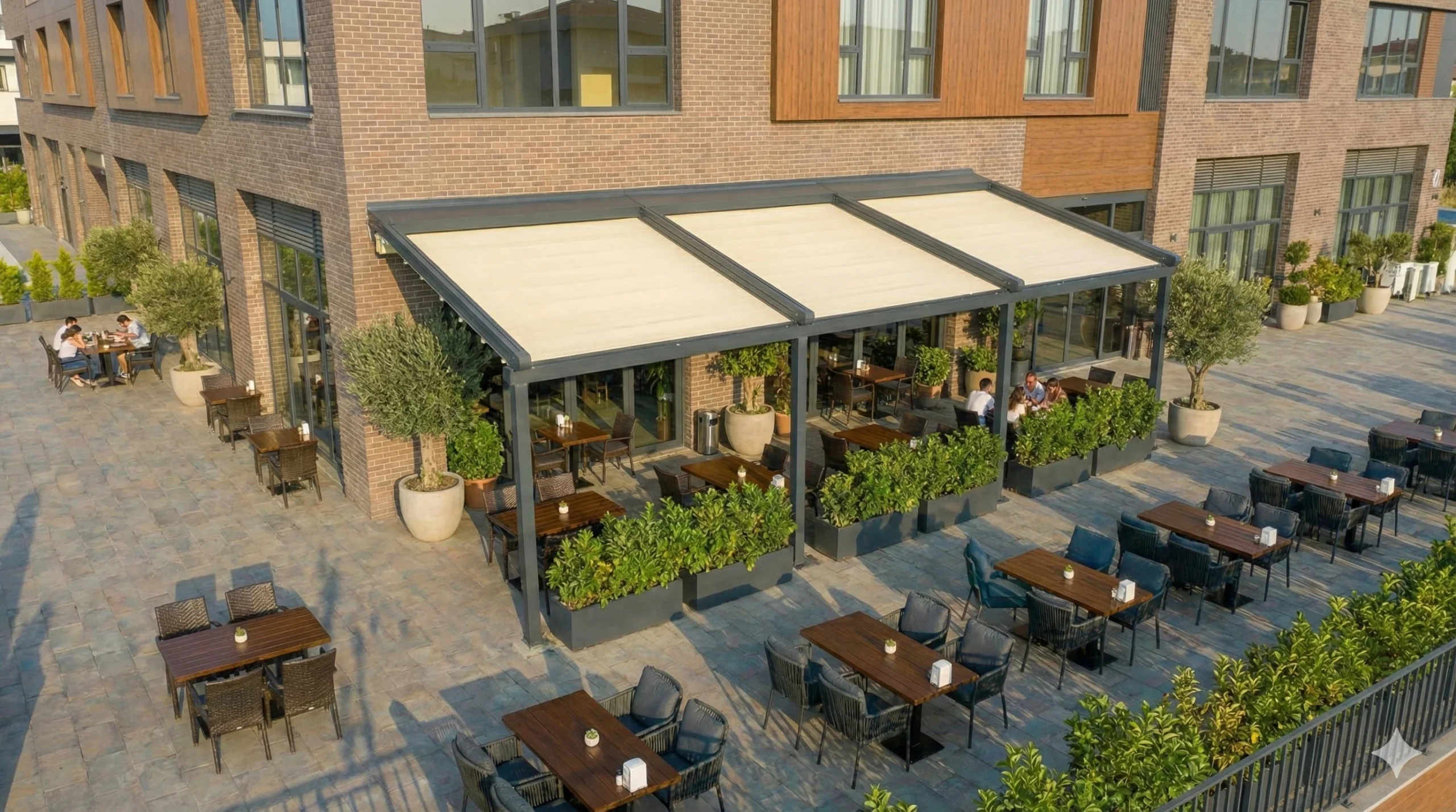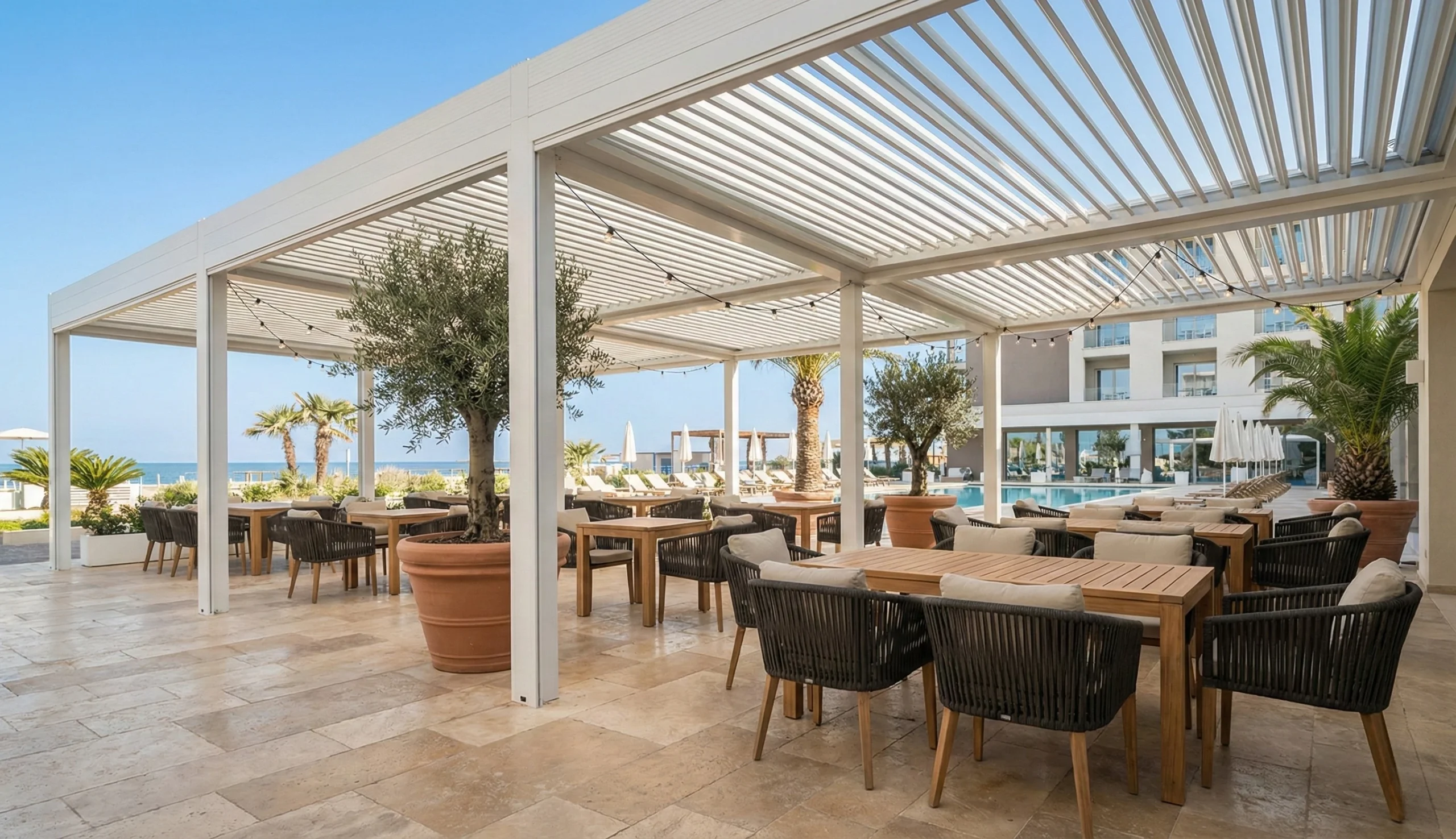 Our custom-built pergolas are designed for restaurants, hotels, and cafés that want to welcome more guests and create a better outdoor dining experience in any weather.